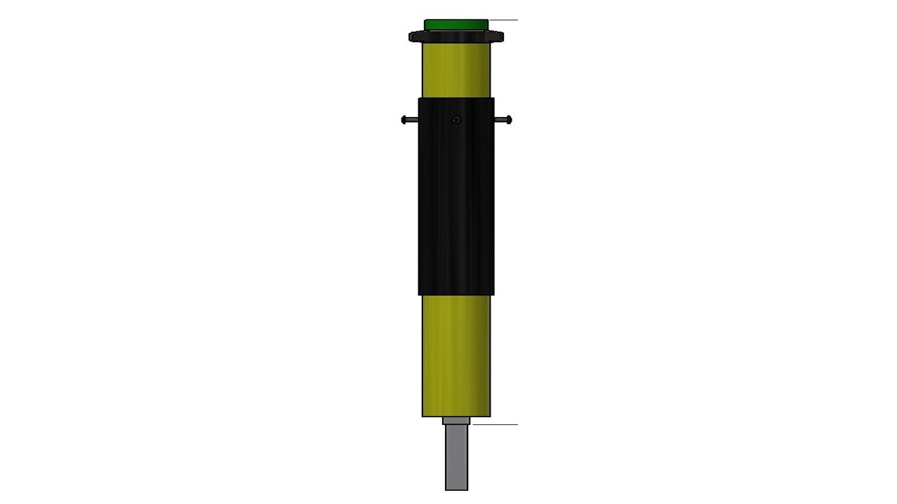- Trekk ned reparasjonssettes sorte rør og monter de 8 medfølgende skruene. 4 stk gjennom den eksisterende spindelforlengerens gule rør og 4 stk gjennom reparasjonssettets gule rør.